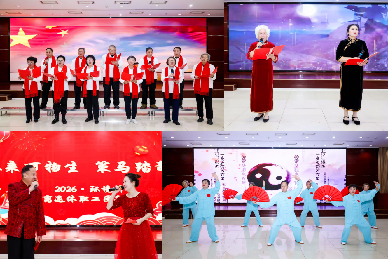 文艺演出环节由退休干部与在职职工代表联袂主持,节目涵盖诗朗诵、合唱、太极表演等,老中青三代同台献艺,充分展现了环境所薪火相传、昂扬向上的精神面貌。与会人员围坐畅谈、笑语连连,在轻松愉悦中共话往昔、共叙情谊,现场暖意融融、祥和喜庆。