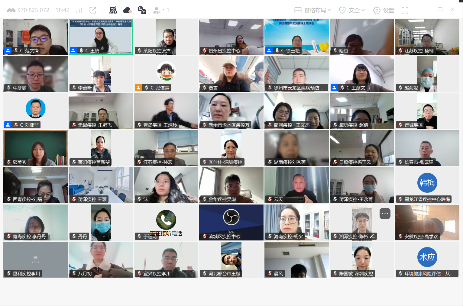 中国疾控中心环境所副所长李湉湉研究员在发言中指出,《指南》作为我国疾控领域首项关注气候变化与健康的推荐性卫生行业标准,凝聚了研究团队近十年在热浪健康影响方面的研究成果,融合了国内外先进方法,经多领域专家论证,兼具科学性与实操性,呼吁各地技术骨干深入学习掌握,共同推动《指南》在实践中的落地应用。随后,王情研究员系统解读了《指南》的编制背景与主要内容。陈晨副研究员结合“华北地区2023年6月热浪人群健康风险评估”实际案例,分享了《指南》在实际应用中的操作要点与应用路径。为增进理解、巩固学习成效,本次课程特设互动环节,参会人员在线互动踊跃。本次课程为推进《指南》在全国范围内的规范、高效应用奠定了坚实基础。